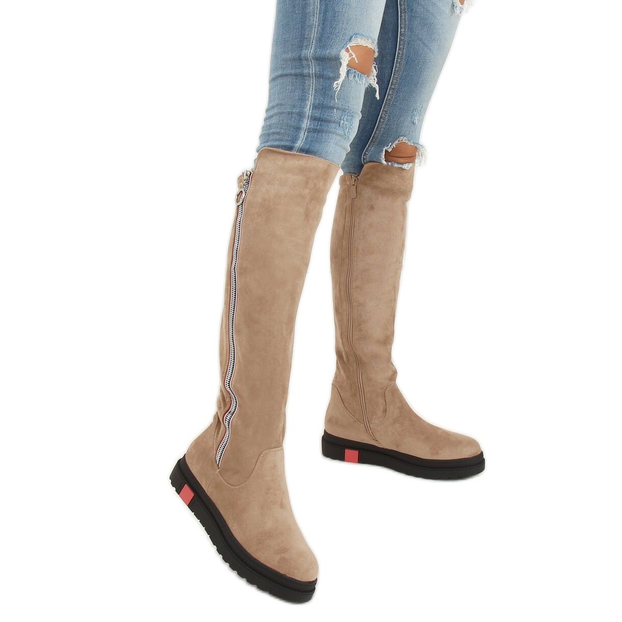 Az Inna Marka NS136P csizma klasszikus, mégis divatos választás, amely tökéletes a mindennapi használatra. Kerek lábujjuk és 3,5 cm-es lapos sarkuk egész napos viselési kényelmet garantálnak, a bézs színnek köszönhetően pedig könnyen kombinálhatók különféle stílusokkal – az alkalmitól az elegánsabbig.