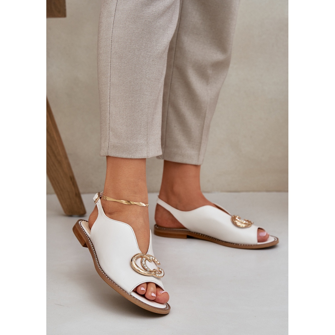 A szandált egy egyedi dekoráció különbözteti meg az elülső részén, amely egyedi karaktert ad nekik, és jól keverednek a nyári stilizációkkal - mind napi, mind különleges alkalmakkor. A puha, bőr talpbetét még hosszú felhasználási órákban is kényelmet nyújt, ami tökéletes választást jelent napsütéses napokhoz.
