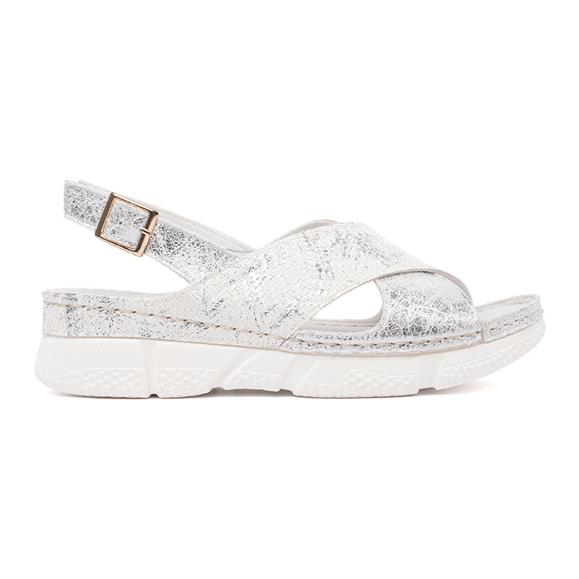A külső anyag az ökológiai bőr, amely nemcsak vonzónak tűnik, hanem könnyű gondoskodni. A szandál belsejét kényelmes természetes bőrbetét tölti be, amely tökéletes illeszkedést és kényelmet biztosít. A csatrögzítés lehetővé teszi a gyors és egyszerű felhelyezést, és a klasszikus fehér szín ezeket a szandált stílusos kiegészítőké teszi bármilyen stilizáláshoz.
