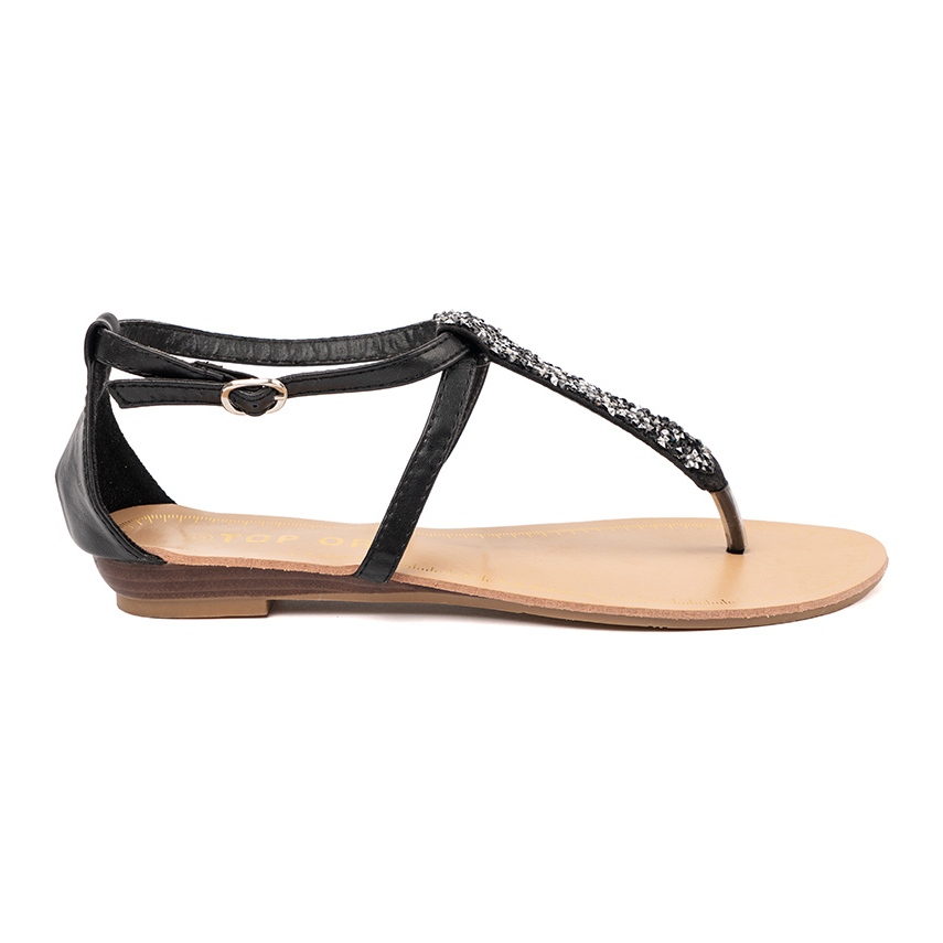 Részletek: Lapos fekete -stílusú fekete szandál
