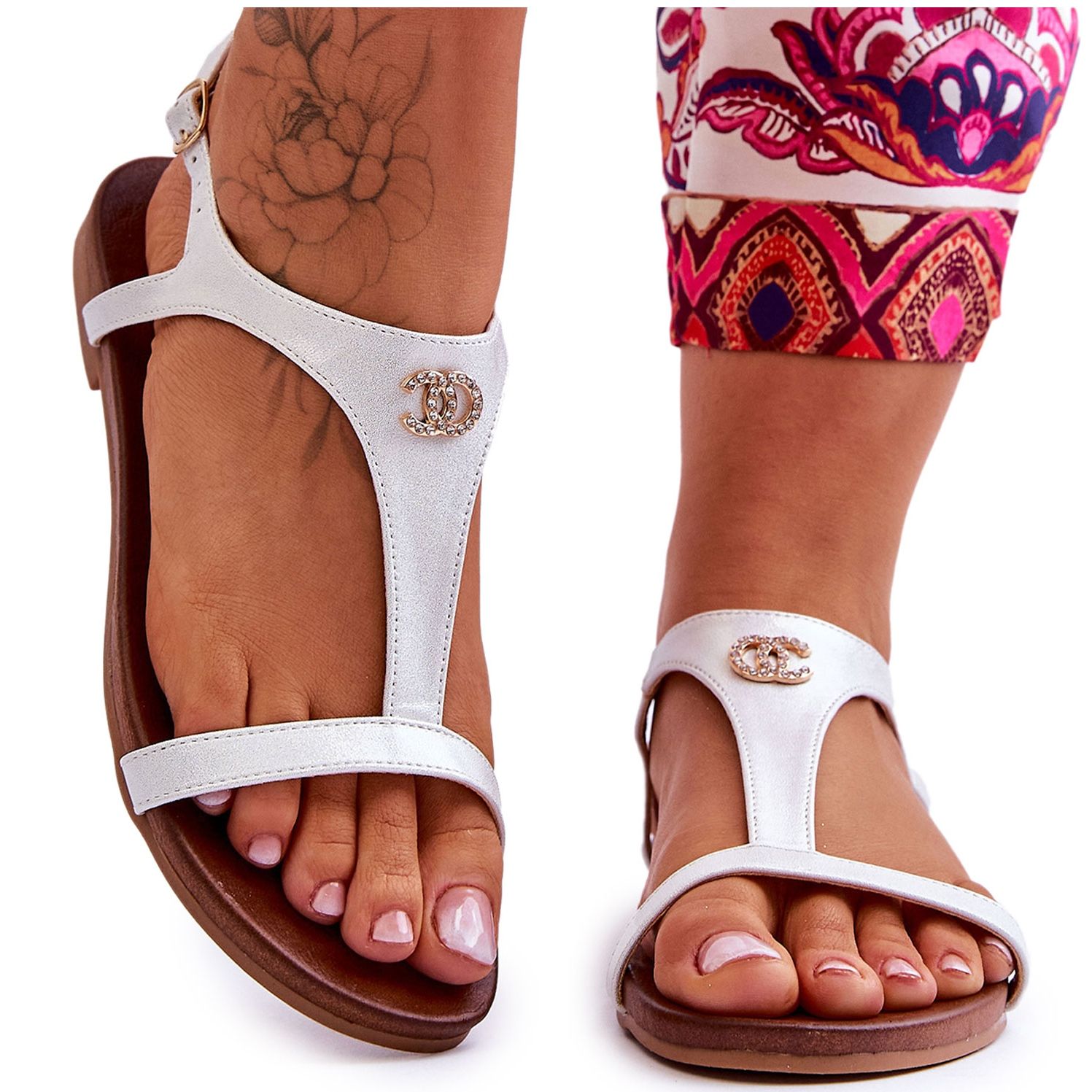 S.Barski Lapos szandál díszítéssel S.Barski KV-5541-45 Ezüst