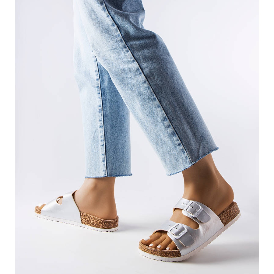 Ezek az ezüst papucsok a szezon igazi slágerei, tökéletesek a mindennapi stílushoz. Minimalista megjelenésük alkalmi és elegánsabb ruhákhoz egyaránt alkalmassá teszi. A 3 cm-es sarokmagasság egy kis stílust ad, miközben stabilitást biztosít járás közben.
