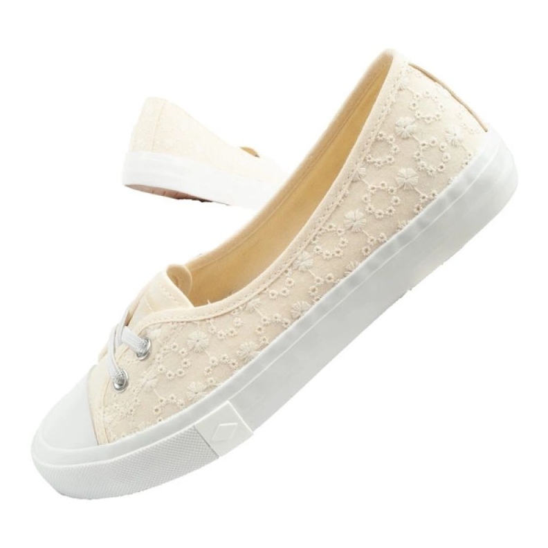 A biztonság kedvéért a cipő tartós, gumi és nem -slip talppal van felszerelve, amely stabilizálja a lépést a különböző felületeken. A kerek orr és az alacsony konstrukció miatt ez a lábbeli modell tökéletesen illeszkedik a napi alkalmi stilizációkba, és bézs színük sokféle ruhát illik.