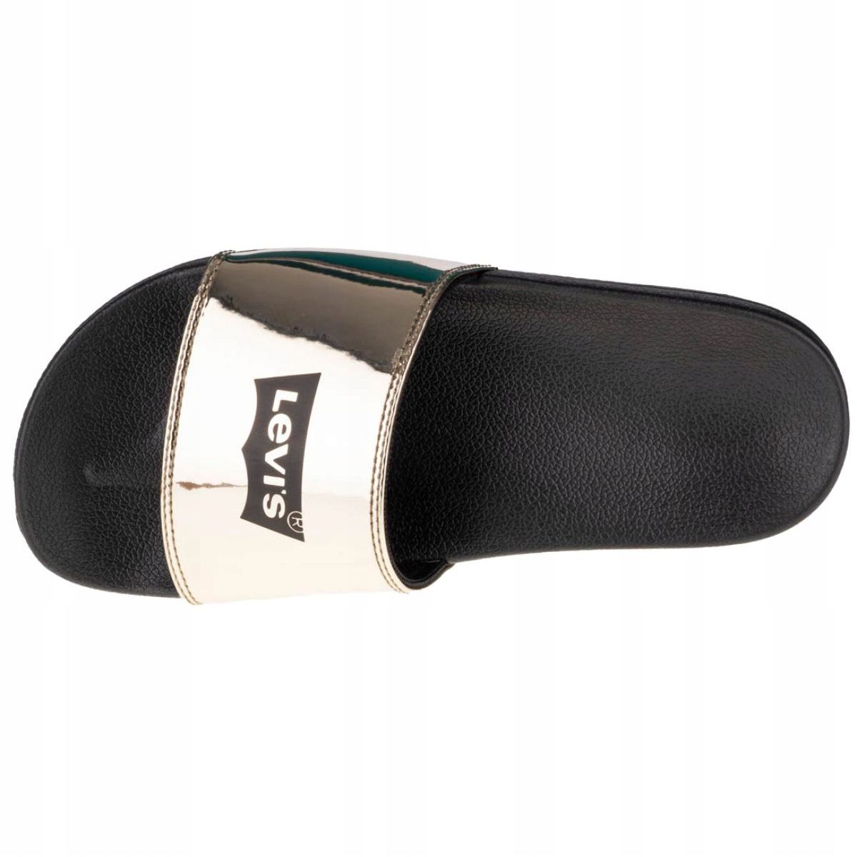 Levi's June Batwing SW 229170-755-04 37 flip-flop elegáns és kényelmes női lábbeli, tökéletes a nyári hónapokra. Stílusukban a klasszikus fekete szín és a szemet gyönyörködtető arany árnyalatok ötvöződnek, így nemcsak praktikus választás a meleg napokra, hanem a nyári stílus divatos kiegészítője is.