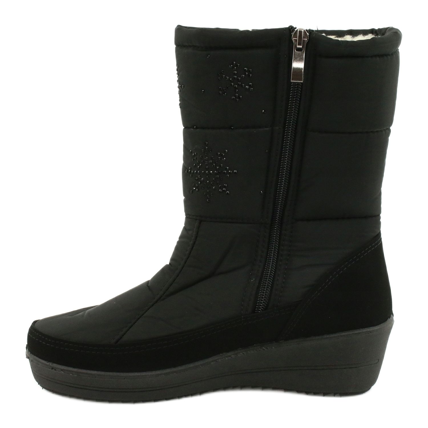 A Progress 20-01 hócsizmák cipzárral vannak ellátva, ami megkönnyíti a fel- és levételüket. Ezenkívül finom cirkóniákkal díszítve varázslatot adnak minden stílushoz. A kényelmes, 5 cm magas ék nem csak stílusossá teszi a cipőt, hanem kényelmessé is teszi a mindennapi használat során.