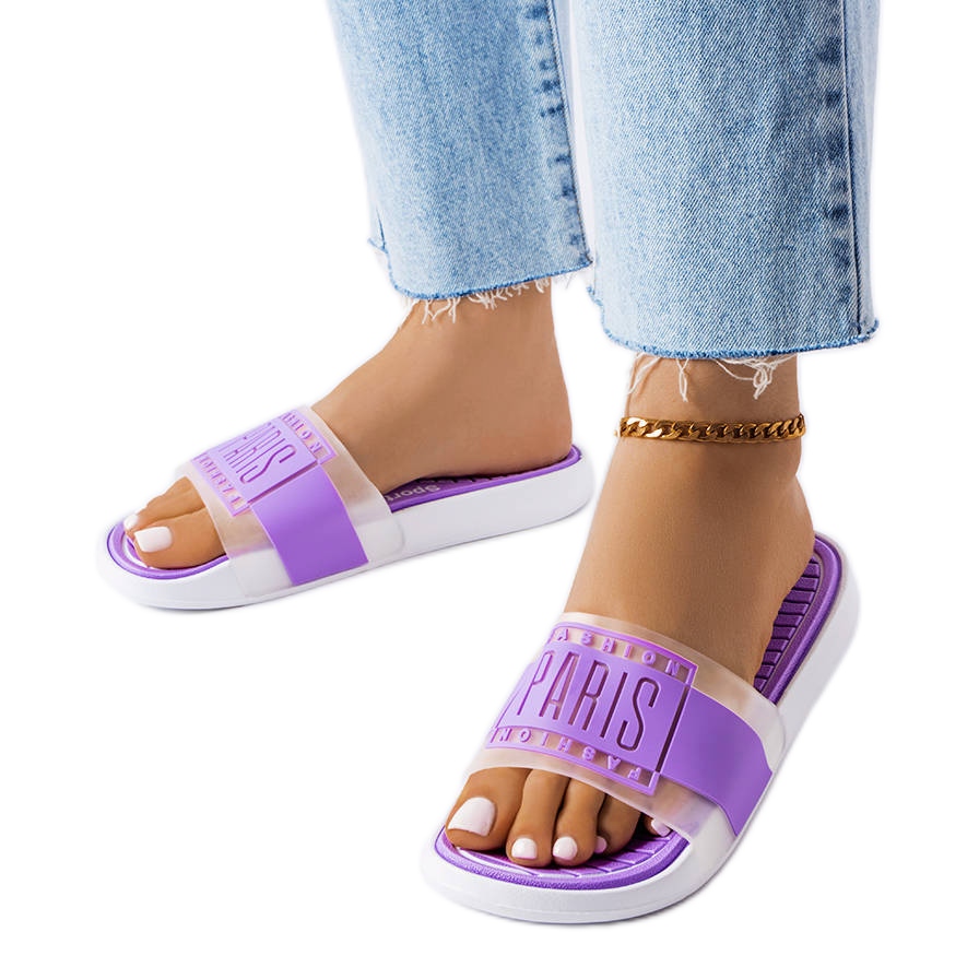 Párizsi lila gumi flip -flops - A szezon egy olyan találata, amely ötvözi a kényelmet a városi stílussal. A magas, 3 cm -es talp, fehér élekkel és puha, gumi felső, könnyű, kényelmes modellt képez a nyárra. A minimalista, kerek lábujj és sima, egyenletes színek miatt a szárnyak mind alkalmi stílusú, mind a strandkimenetekhez illeszkednek.