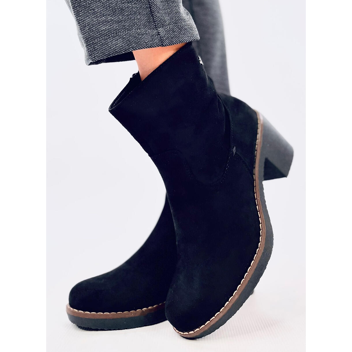 A napi használatra tervezett ezeknek a csizmáknak gyakorlati cipzáras rögzítője van, ami megkönnyíti a felhelyezést és a felszállást. Kerekített orruk hangsúlyozza a finomságot és az eleganciát, és a szelíd varrás hozzáadja a cipőt. A felmelegedésnek köszönhetően ezek a csizmák tökéletesen működnek a hűvösebb napokon, miközben gondoskodnak a melegségről és a kényelemről.