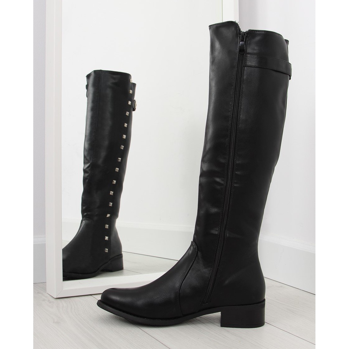 Részletek: Lovaglócsizma szegecsekkel fekete PE115P fekete