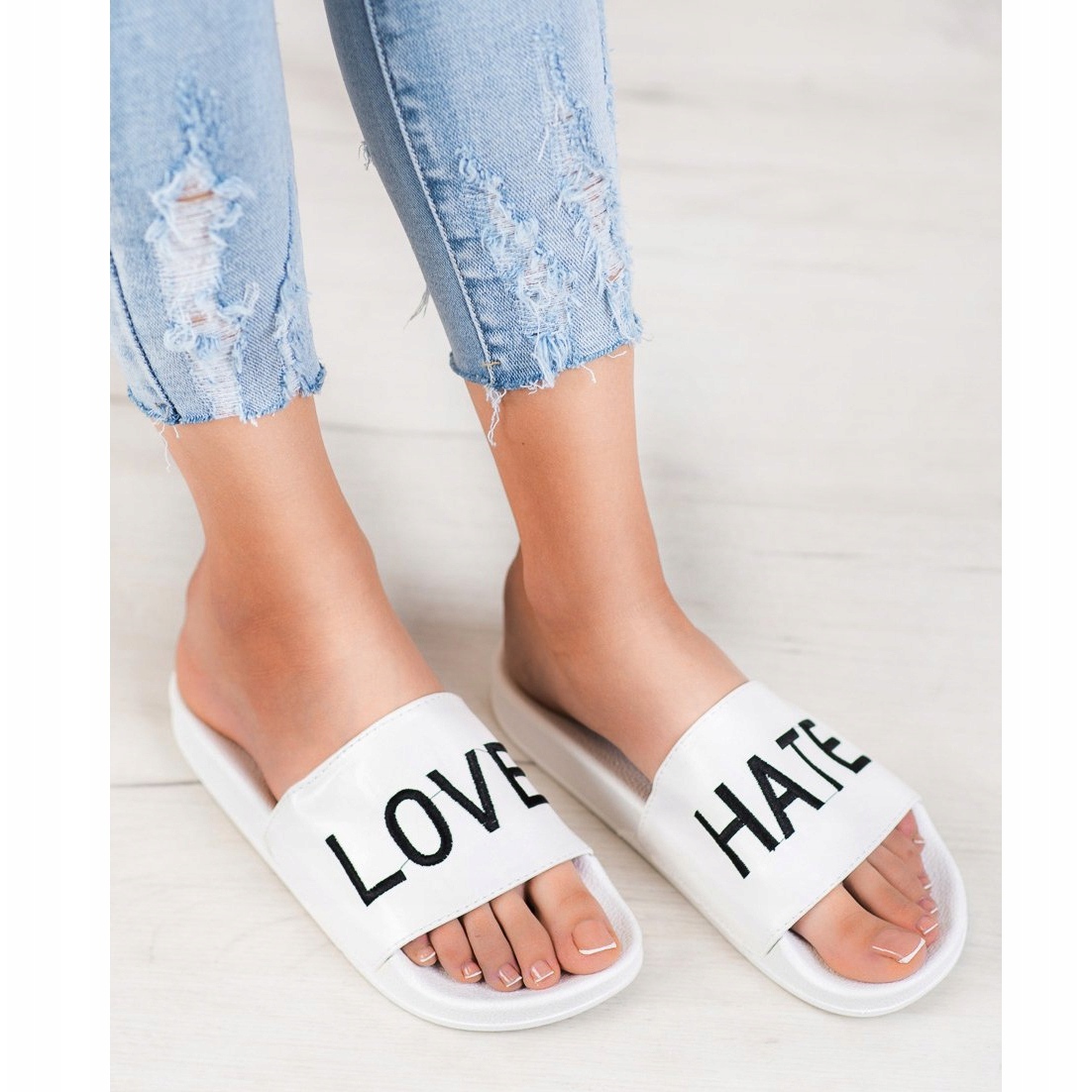 Bemutatjuk a Small Swan márka fehér LOVE&HATE öko-bőr papucsait - tökéletes választás azoknak a nőknek, akik a divatot a kényelemmel szeretnék ötvözni! Modern kialakításuknak köszönhetően ezek a papucsok minden bizonnyal felkeltik a figyelmet, és tavasszal és nyáron ruhatárad nélkülözhetetlen elemeivé válnak.
