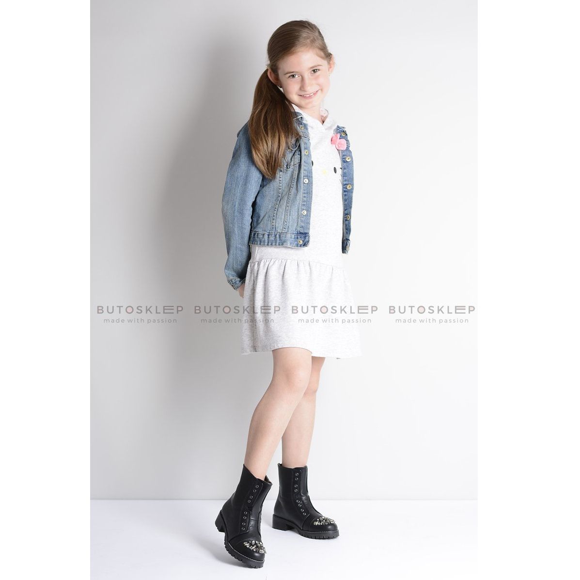 A cipő orrát gyönyörű cirkóniák díszítik, amelyek egyedi varázst adnak nekik, és gyermeke kitűnik a tömegből. A csizma szármagassága 14 cm, lapos sarka 3,5 cm, ami stabilitást és kényelmet biztosít minden lépésnél. A cipzár megkönnyíti a fel- és levételt, a merev sarok pedig megfelelő tartást biztosít a kicsi lábának.