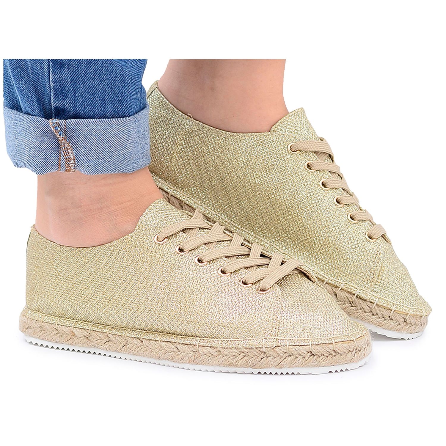 LU BOO Lu Boo | Golden Glitter Fairy Linen Espadrilles aranysárga