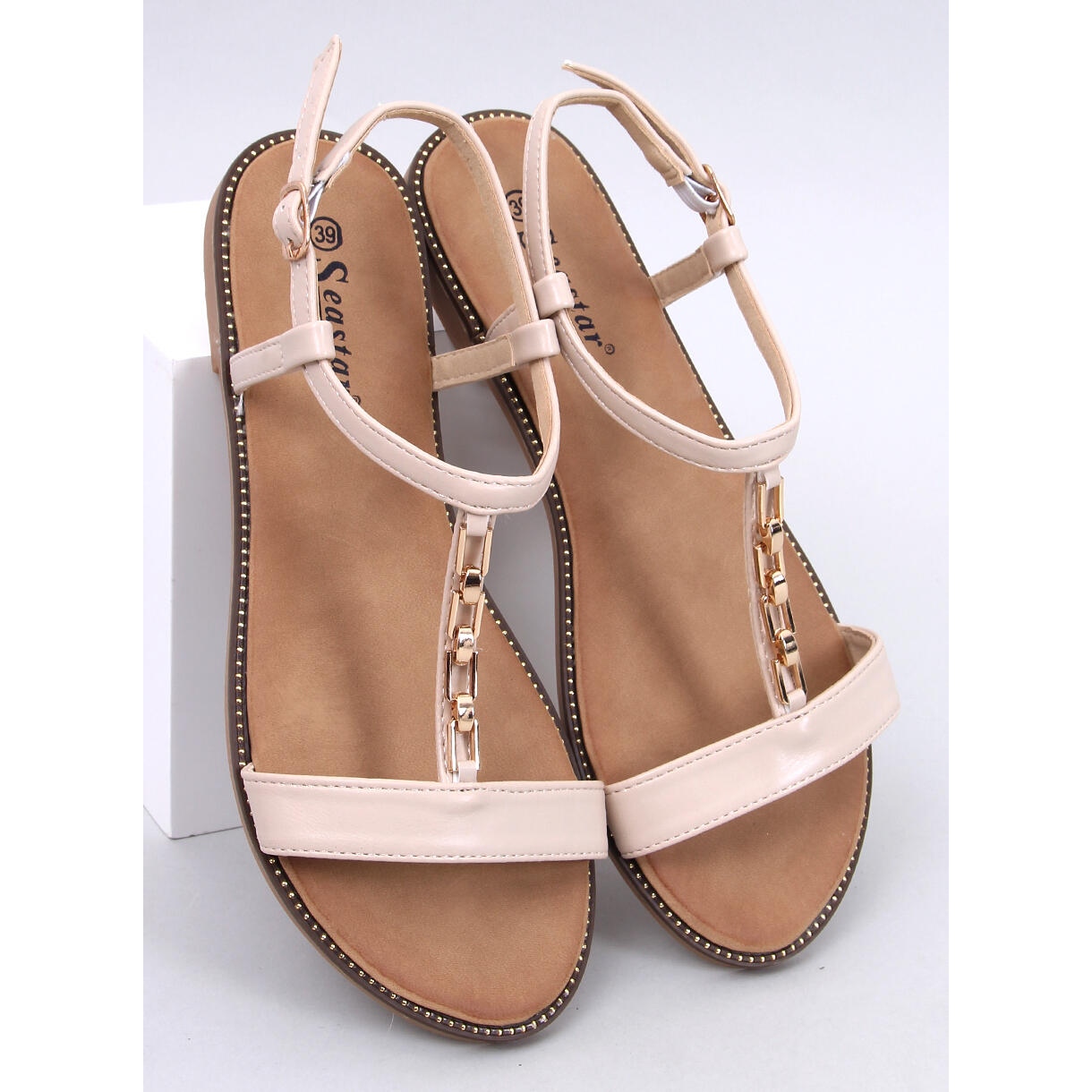 Fedezze fel a nyári stílus új dimenzióját, köszönhetően a női Luzi szandálnak, bézsben! Ezek a gabona szandál egy lapos talpon egyesíti a minimalista kialakítást az elegáns akcentussal, amely minden stilizáláshoz varázst ad. A strasszokkal és a lánccal dúsított finom arany dekoráció tökéletesen hangsúlyozza a láb szépségét, így ezek a szandálok tökéletes kiegészítőként szolgálnak mind az alkalmi, mind az elegánsabb ruhákhoz.