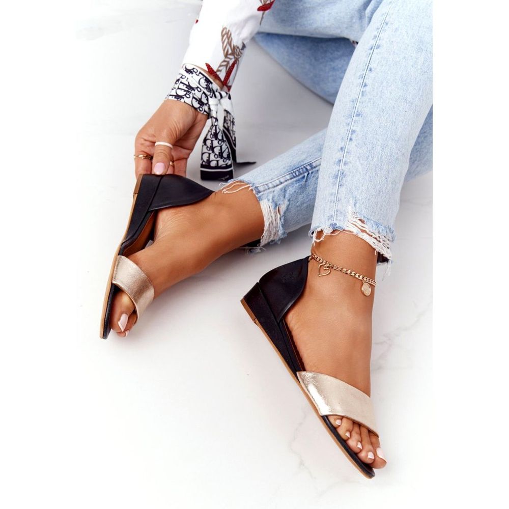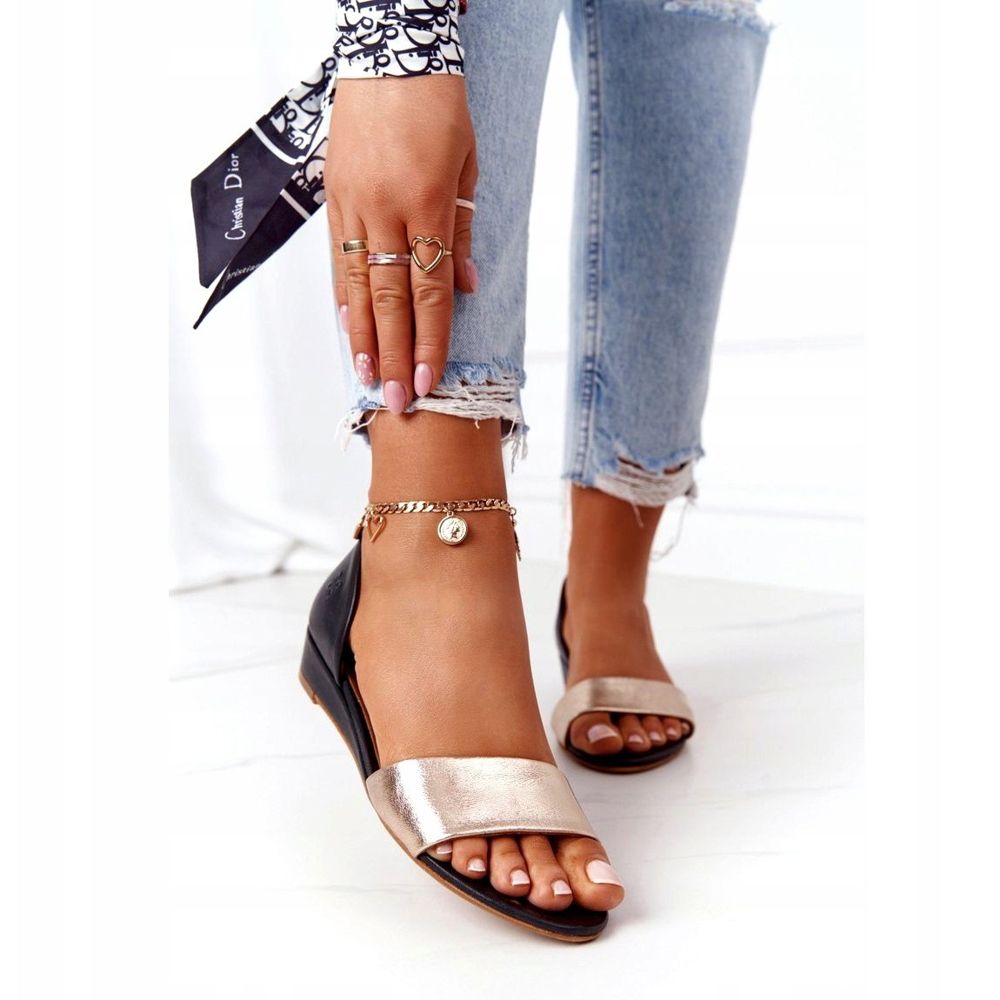 Maciejka Maciejka bőr szandál 1971-46 Fekete és arany aranysárga