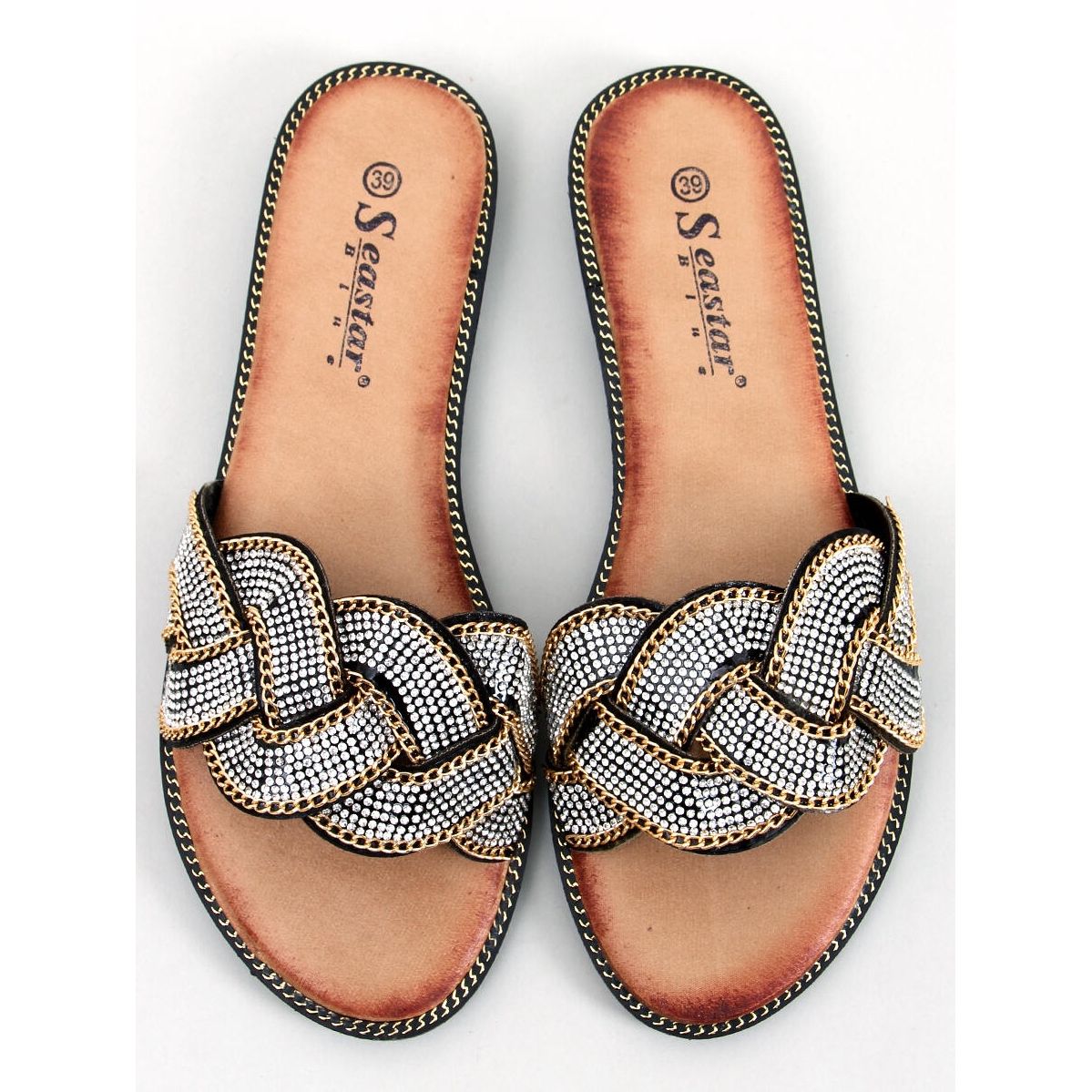 Fedezze fel a rendkívüli stílust és kényelmet a PA1 Magali Black strasszos papucsokkal! Ezek az egyedi női lapos papucsok tökéletes választás a mindennapi használatra, ötvözik az eleganciát a praktikummal. A szemet gyönyörködtető, sima, fényes cirkóniákkal díszített szíj különbözteti meg őket, amelyek mindenki figyelmét felkeltik.