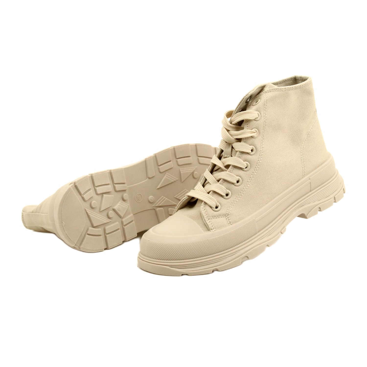 Klasszikus és ugyanakkor a modern - a magas hírek bézs árnyalatában minden nap kényelmes és stílusos javaslat. A boka és a 4 cm magasságú stabil platform elérésével a magas felső felső rész kissé lecsökkent az ábrán, megőrizve a viselkedés kényelmét. A felső és a belső terek levegős anyagból készültek, és a gumi talp jó tapadást biztosít. Barátságos a mindennapi stilizációkhoz - az alkalmi ruháktól a farmerig.