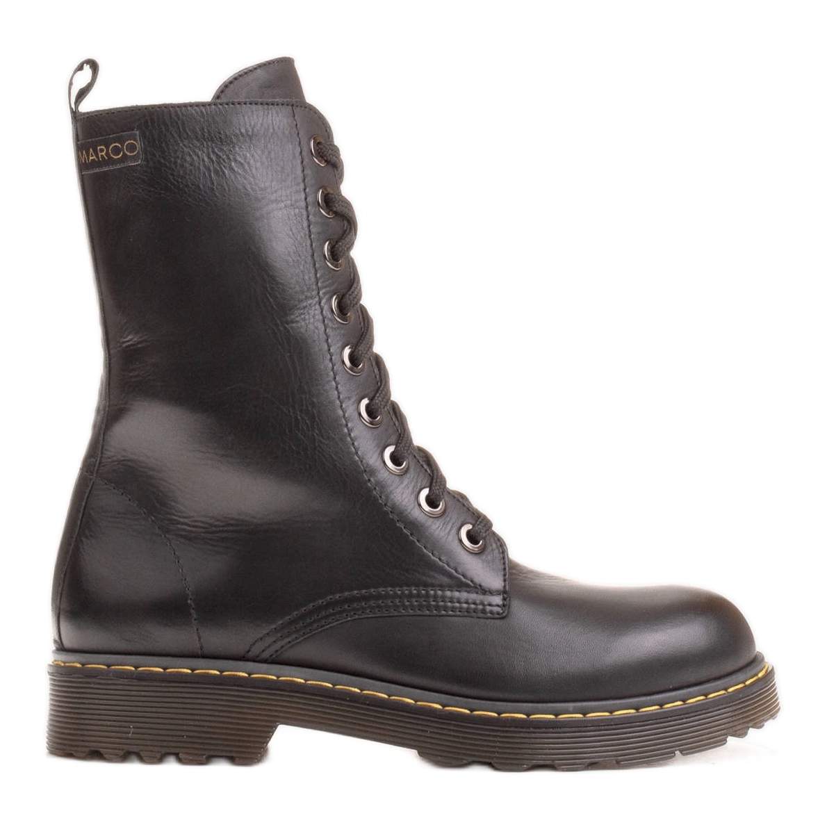 Stílusos, szigetelt Marco cipőcsizma olyan nők számára készült, akik minden nap értékelik a klasszikus rock karakter kombinációját. Fekete gabona természetes bőr, gyakorlati cipzáras és kötő rögzítőelem, és egy félig átlátszó talp divatos, univerzális modellt képez a hűvösebb hónapokban.