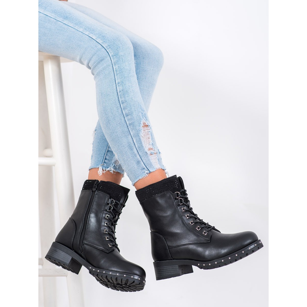 Ezeket a csizmákat mindennapi használatra tervezték - fűzős zárással és cipzárral, ami megkönnyíti a felhúzását. A cipő belsejét kellemes tapintású textilanyag tölti ki, a szigetelés pedig a hidegebb napokon is melegen tartja a lábát.