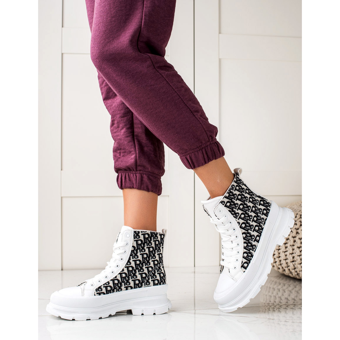 TRENDI TRENDI Magas fehér divat cipők fekete