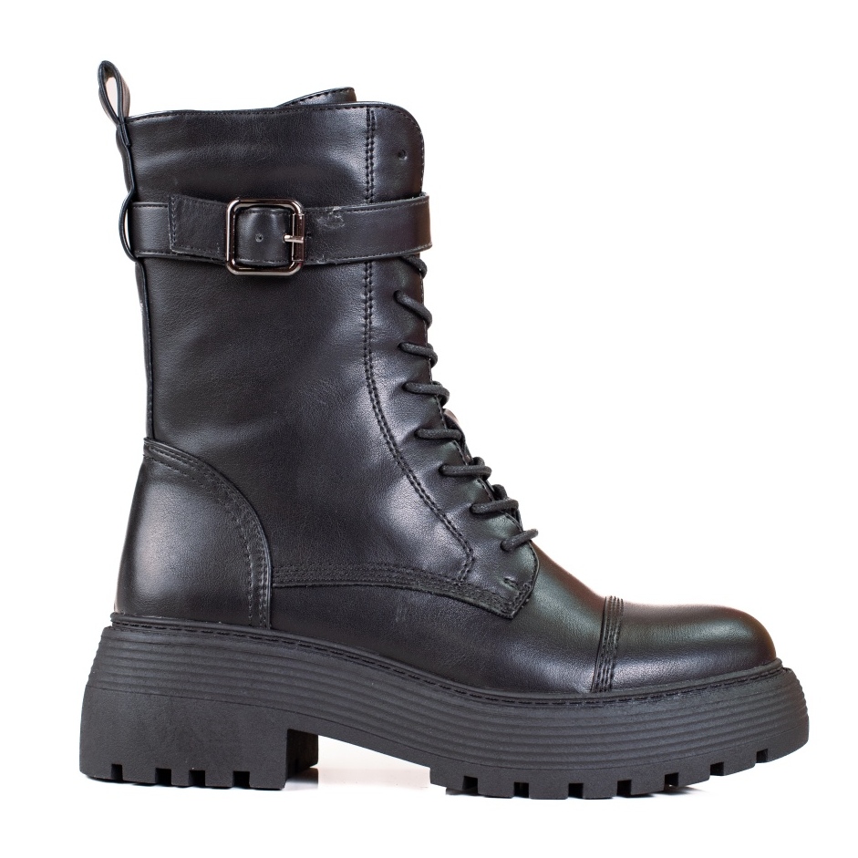 A kiváló minőségű ökológiai bőrből készült munkások nemcsak elegáns megjelenést, hanem használati kényelmet is kínálnak. A beépített, merevített sarok stabilitást biztosít, a bársony textil talpbetét pedig minden ebben a cipőben eltöltött pillanatot élvezetté tesz. A felső 18 cm-es magassága védi a bokát, a felső szélessége pedig 26 cm, így különböző típusú lábakra alkalmas.