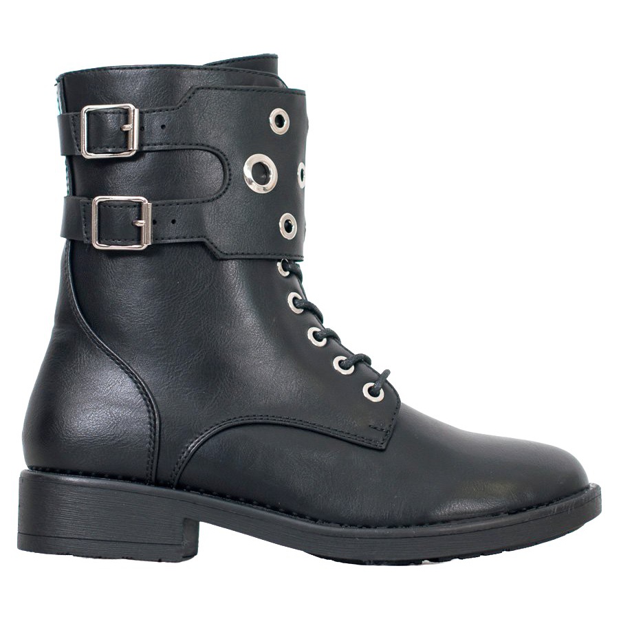 A bokáig érő, magas felsőrész hatékonyan védi lábát a hideg és a nedvesség ellen, így kiváló választás a hidegebb napokra. A futófelülettel ellátott tömör talp stabilitást és kényelmet garantál járás közben. További előnyt jelentenek a strasszok és a dekoratív csatok, amelyek rockos karaktert adnak a cipőknek, és minden gardrób divatos elemévé teszik.