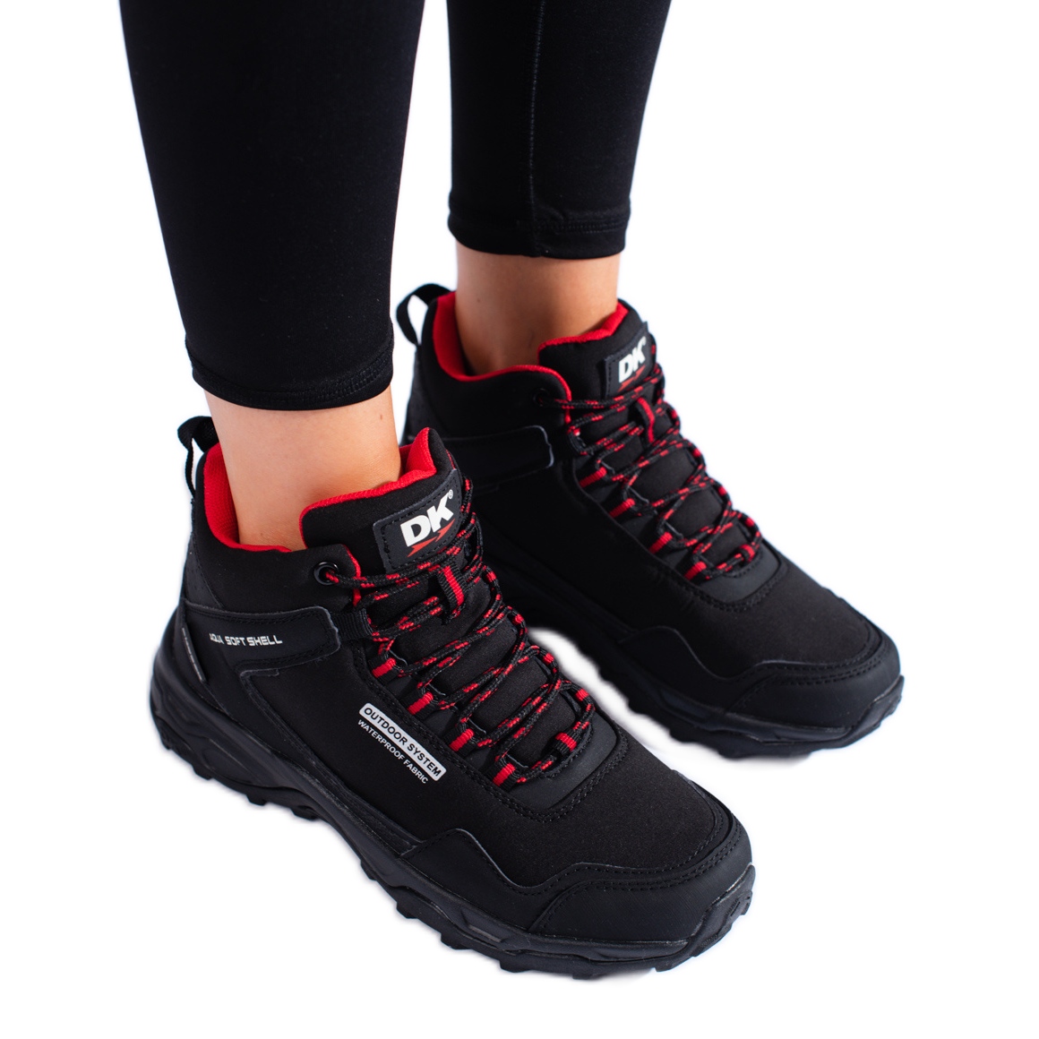 Részletek: Magas női trekking cipő DK fekete és piros