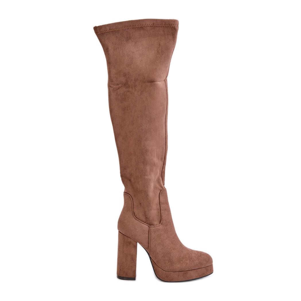 Inna marka Magas sarkú és platós csizma térd feletti felsőrésszel, Eco Suede sötétbézs Zistaria