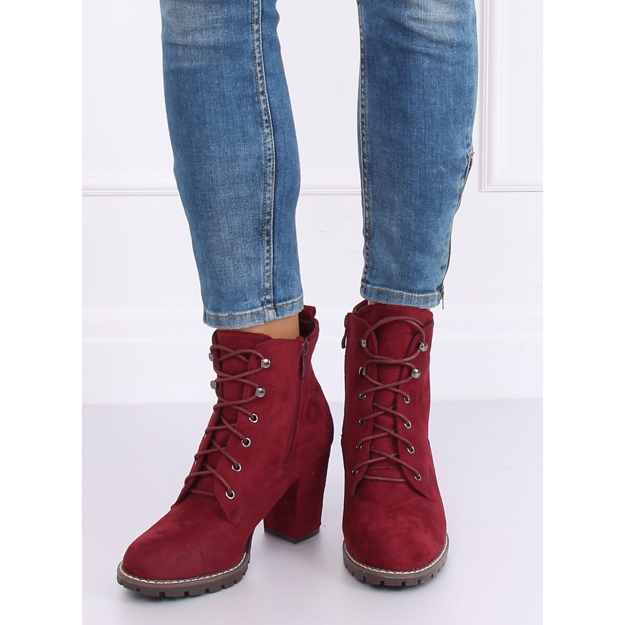 Részletek: Magas sarkú fűzős csizma 7081 Bor piros