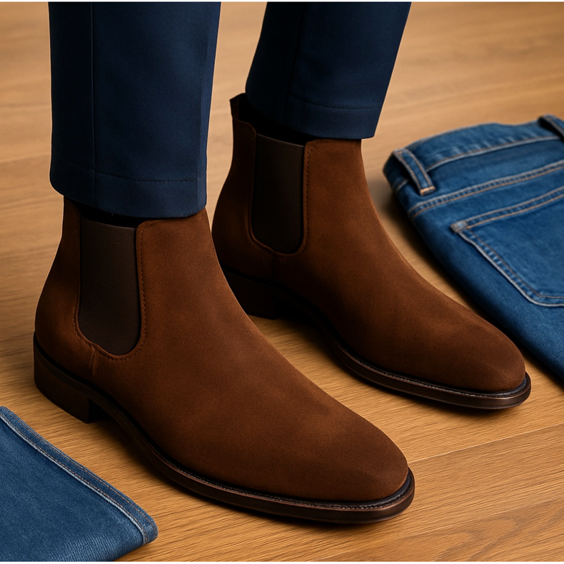 Ha csak egy párod van, hajrá Chelsea csizma sötétbarna vagy fekete színben — a ruhatár 80%-ához passzol (öltöny, farmer, chino).