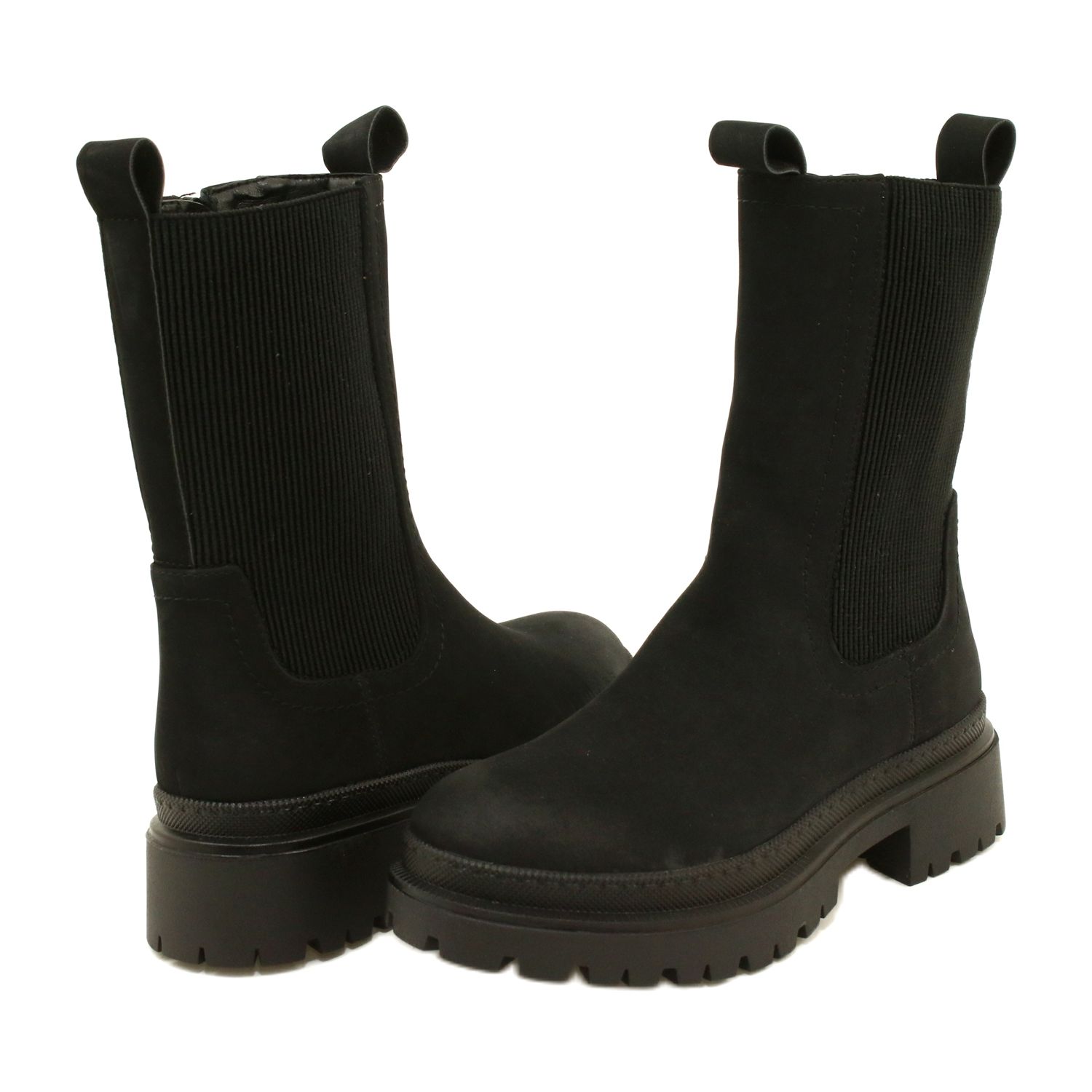 Magas szigetelt női rendezvények 23BT35-6440 Black-A stílusos és gyakorlati megoldás hűvösebb napokra. Ökológiai bőrből készültek, lágyan becsomagolják a lábát, és a belső teret kellemes szőrszírral bélelték, amely hőt és kényelmet biztosít. A szilárd 5 cm -es platform divatos karaktert és stabilitást ad, és a klasszikus, kerek orr hangsúlyozza a női vágást.