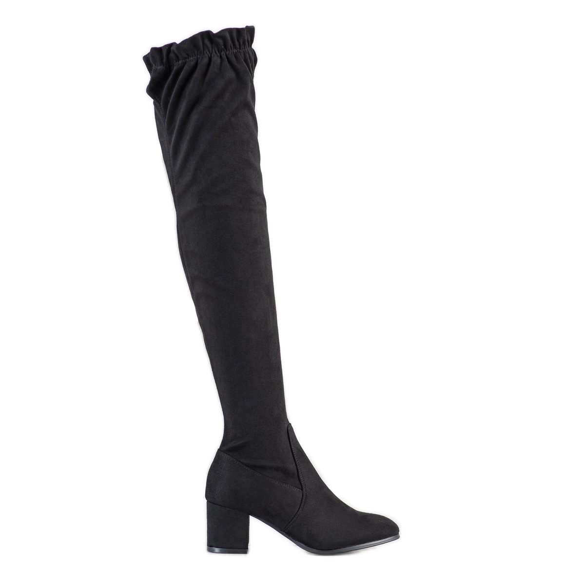 SHELOVET SHELOVET Magas velúr csizma fekete