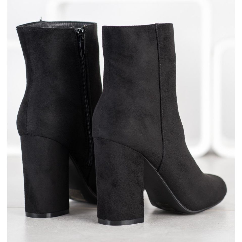 A SHELOVET bokacsizma tökéletes választás minden nő számára, aki értékeli az eleganciát a kényelemmel kombinálva. Kiváló minőségű, ökológiai velúrbőrből készült, mélyfekete színű, alkalmi női cipők minden stílushoz kiválóan kiegészítik.