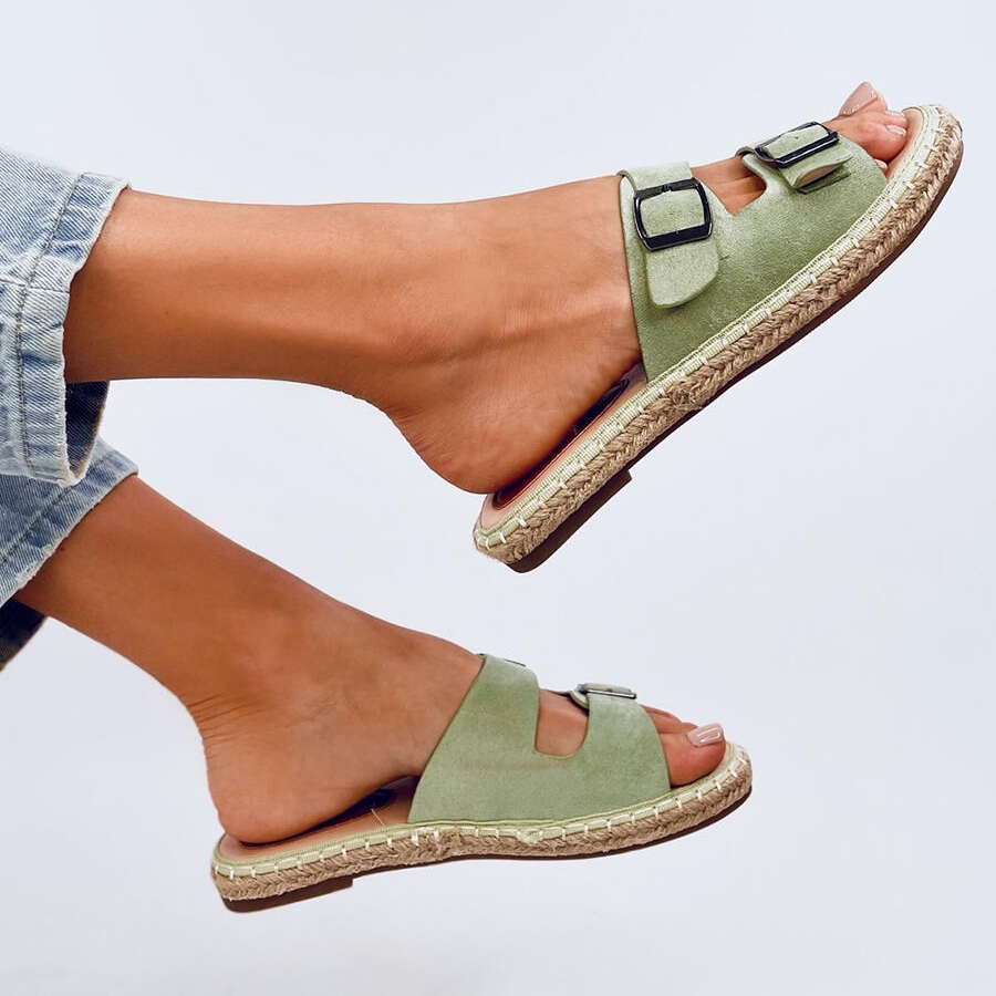 A Maina Green espadrille flip-flop zöld árnyalatban tökéletes választás a nyári napokra. Kiváló minőségű ökológiai velúrból készültek, nem csak stílusos megjelenést, hanem viselési kényelmet is biztosítanak. Az espadrillákra jellemző vászonszálas lapos talp könnyedséget és lezser stílust kölcsönöz.