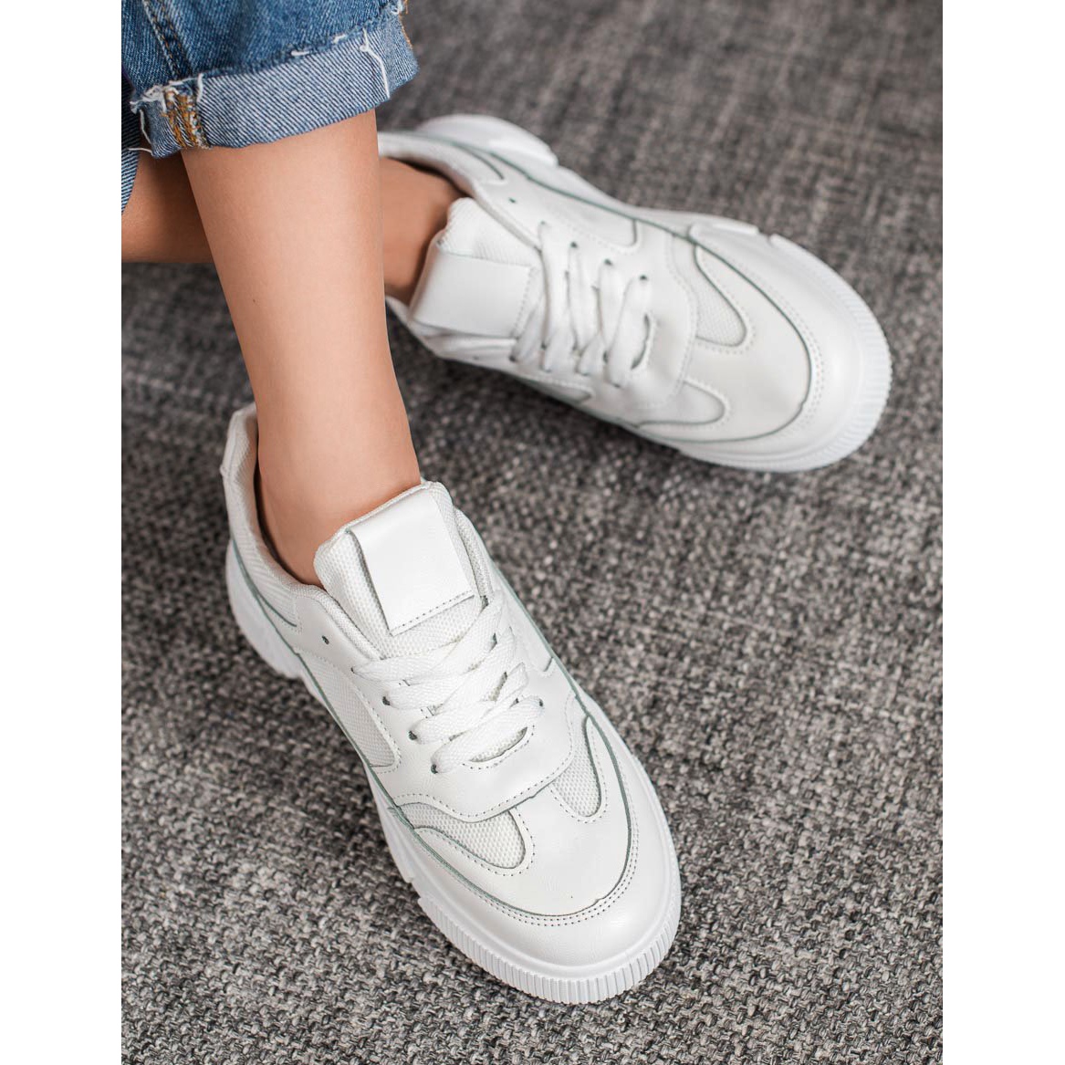 A fehér női MCKEYLOR platformcipő tökéletes választás azoknak a nőknek, akik a kényelmet a divatos stílussal szeretnék ötvözni. Ezeket a sportcipőket kiváló minőségű szintetikus anyag jellemzi, amely biztosítja a tartósságot és a viselési kényelmet.