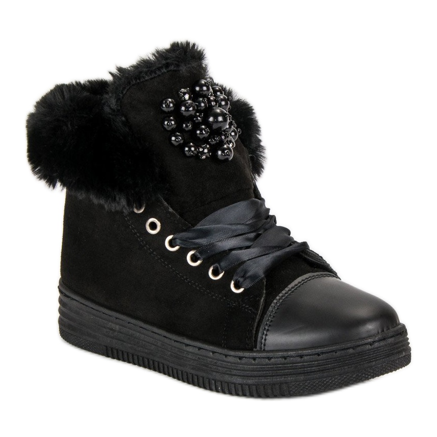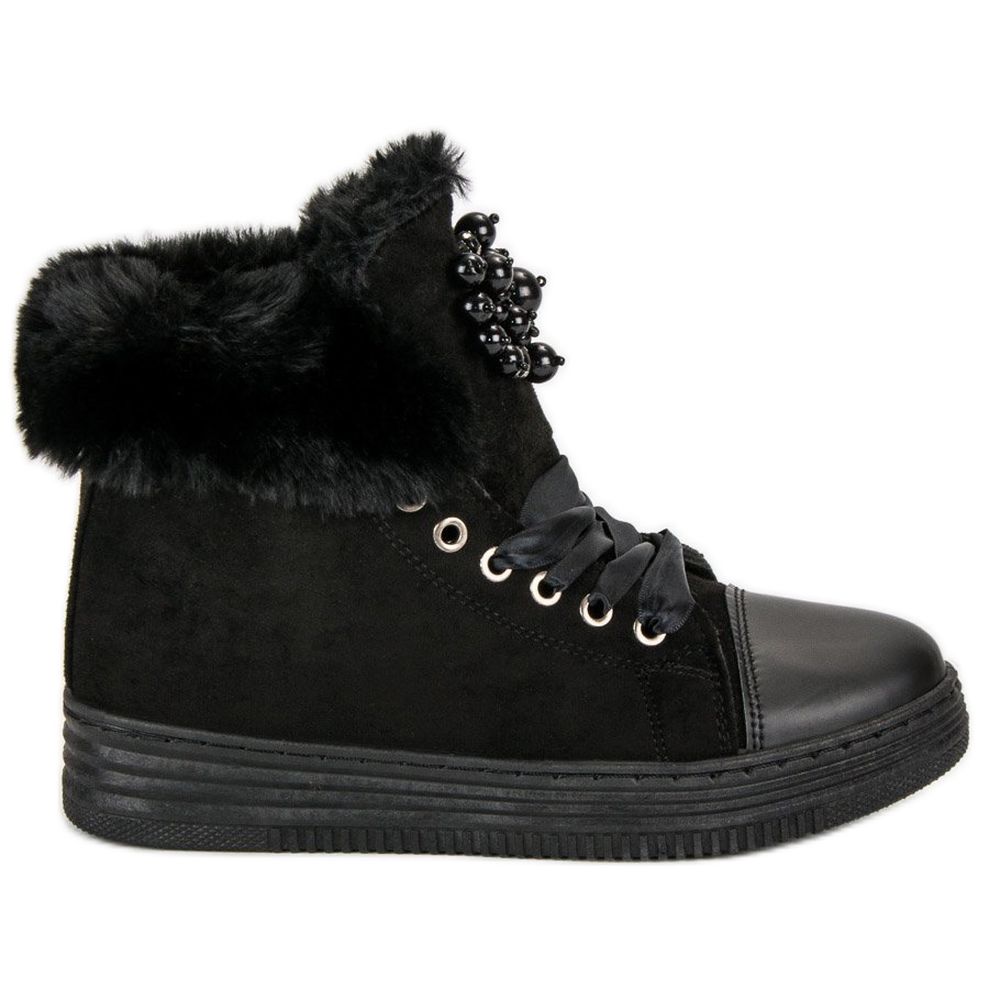 A fekete szín rendkívül univerzálissá teszi őket, és könnyen illeszthetők különféle stílusokhoz - hétköznapi és elegánsabb stílusokhoz egyaránt. A vastag szigetelés és a szőrmebetét meleget biztosít a hideg napokon, a kerek orr pedig könnyedséget és eleganciát ad. További előnyt jelentenek a divatosan megkötött fűzők, amelyek kényelmessé teszik a lábbeli illeszkedést.