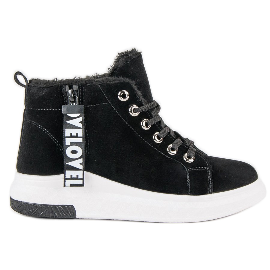 A szigetelt fekete tornacipők a stílus, a kényelem és a funkcionalitás tökéletes kombinációja, azoknak a nőknek készült, akik még a téli napokon is divatosan szeretnének kinézni. A környezetbarát velúrból készült, alacsony szárú tornacipő szilárd szigeteléssel melegen tart, miközben nagyon kényelmes.