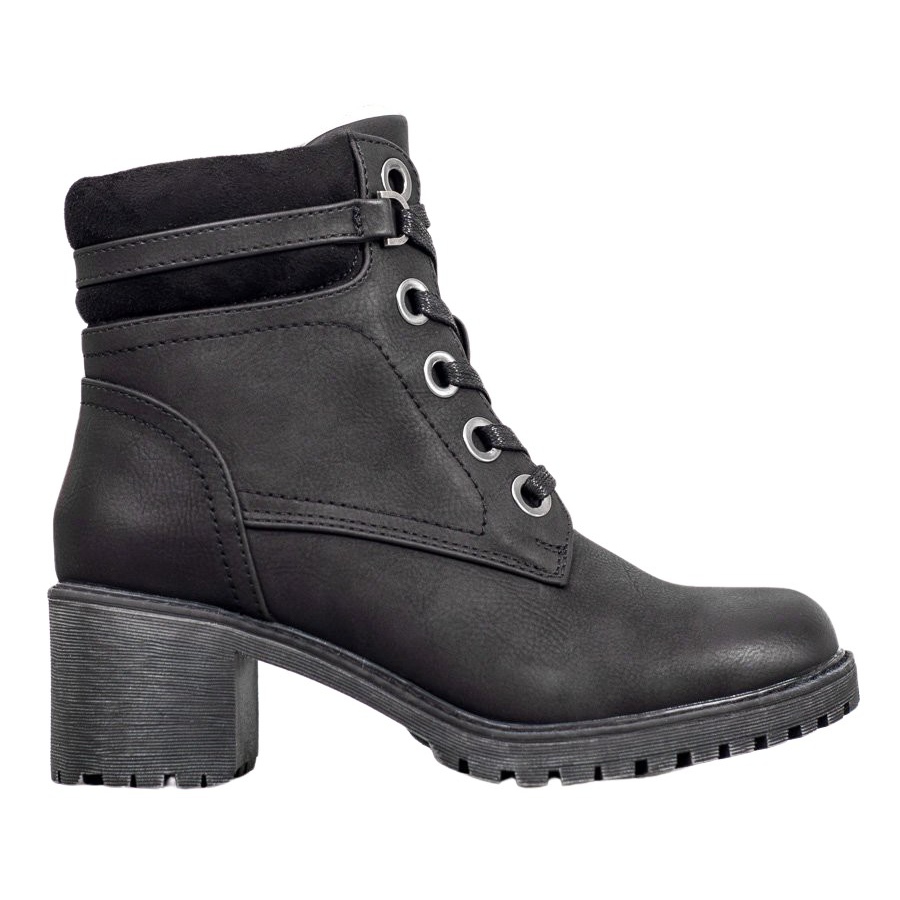 A csizma viselése közben élvezheti a stabilitást a taposott talpnak köszönhetően, amely tökéletes a különféle felületekhez. A 6 cm magas oszlop karcsú alakot kölcsönöz, a kerek orr pedig kényelmes viseletet biztosít. A fűző és a cipzár megkönnyíti a cipők fel- és levételét.