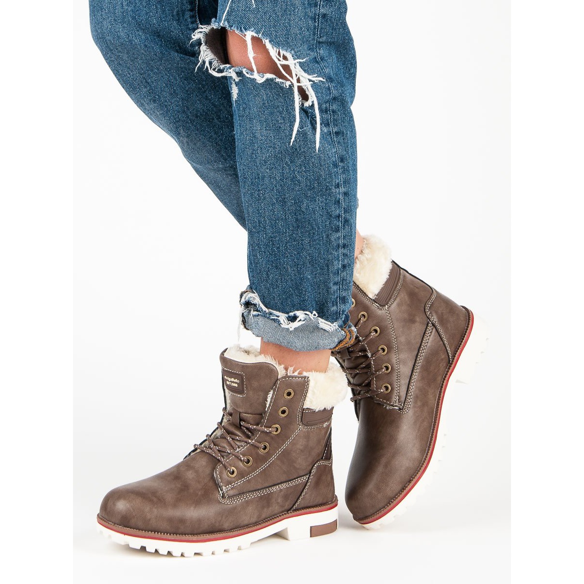 Az olyan részleteknek köszönhetően, mint a felsőrész szőrme, ez a csizma kiemelkedik a többi modell közül, és egy kis eredetiséget ad a mindennapi ruhákhoz. A műanyag futófelülettel ellátott talp jó tapadást garantál, így kiváló választás a téli sétákhoz.