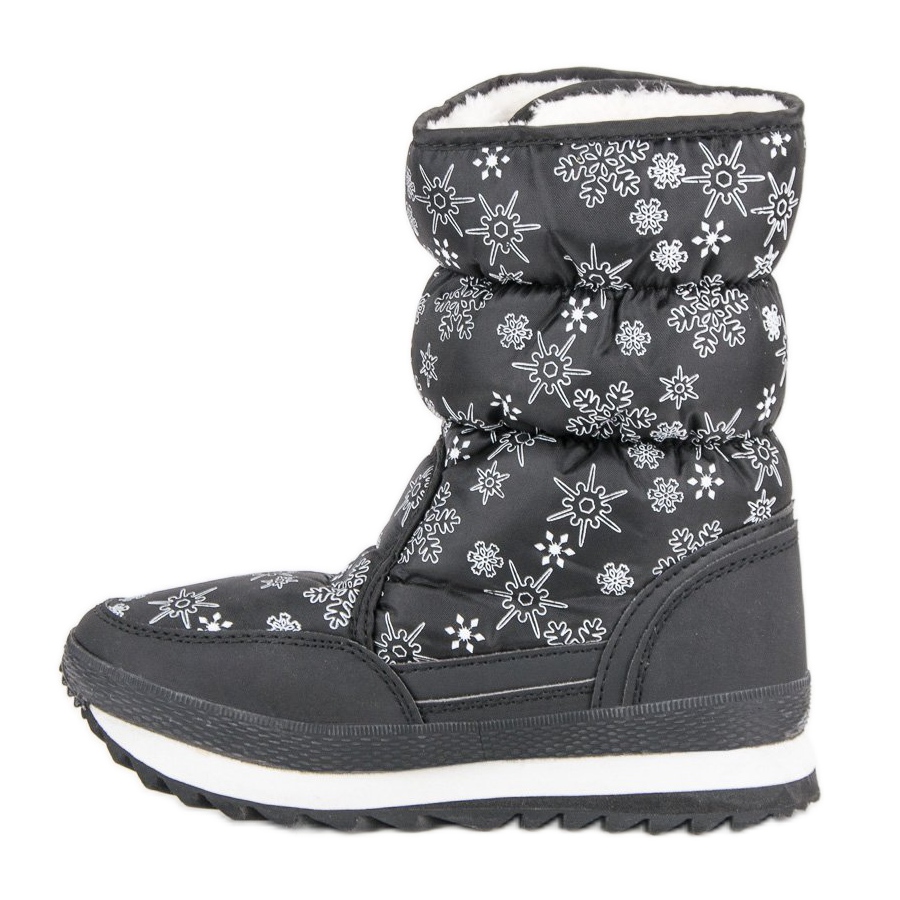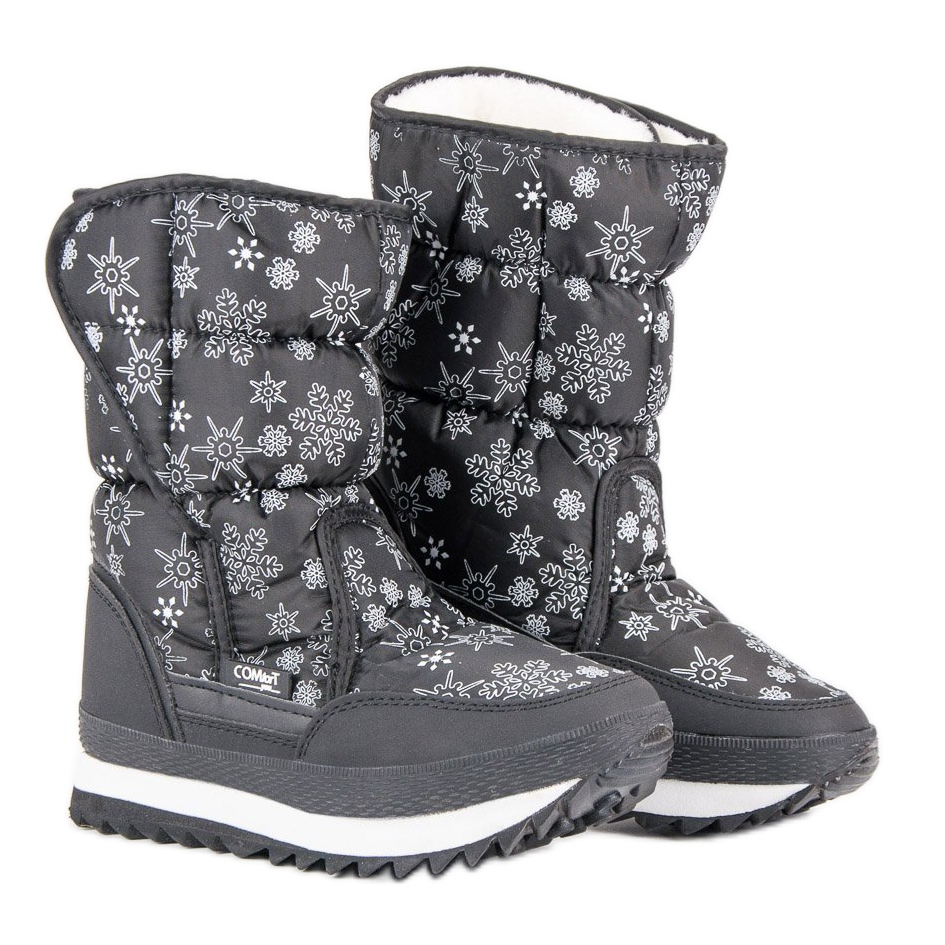 Készüljön fel a téli kihívásokra meleg, fekete hócsizmával, amely egyesíti a stílust a funkcionalitással! Ezek az egyedi, hópehely mintával díszített cipők a szórakoztató dizájn és a fejlett technológia tökéletes kombinációja, amely megvédi lábát a hidegtől és a nedvességtől.
