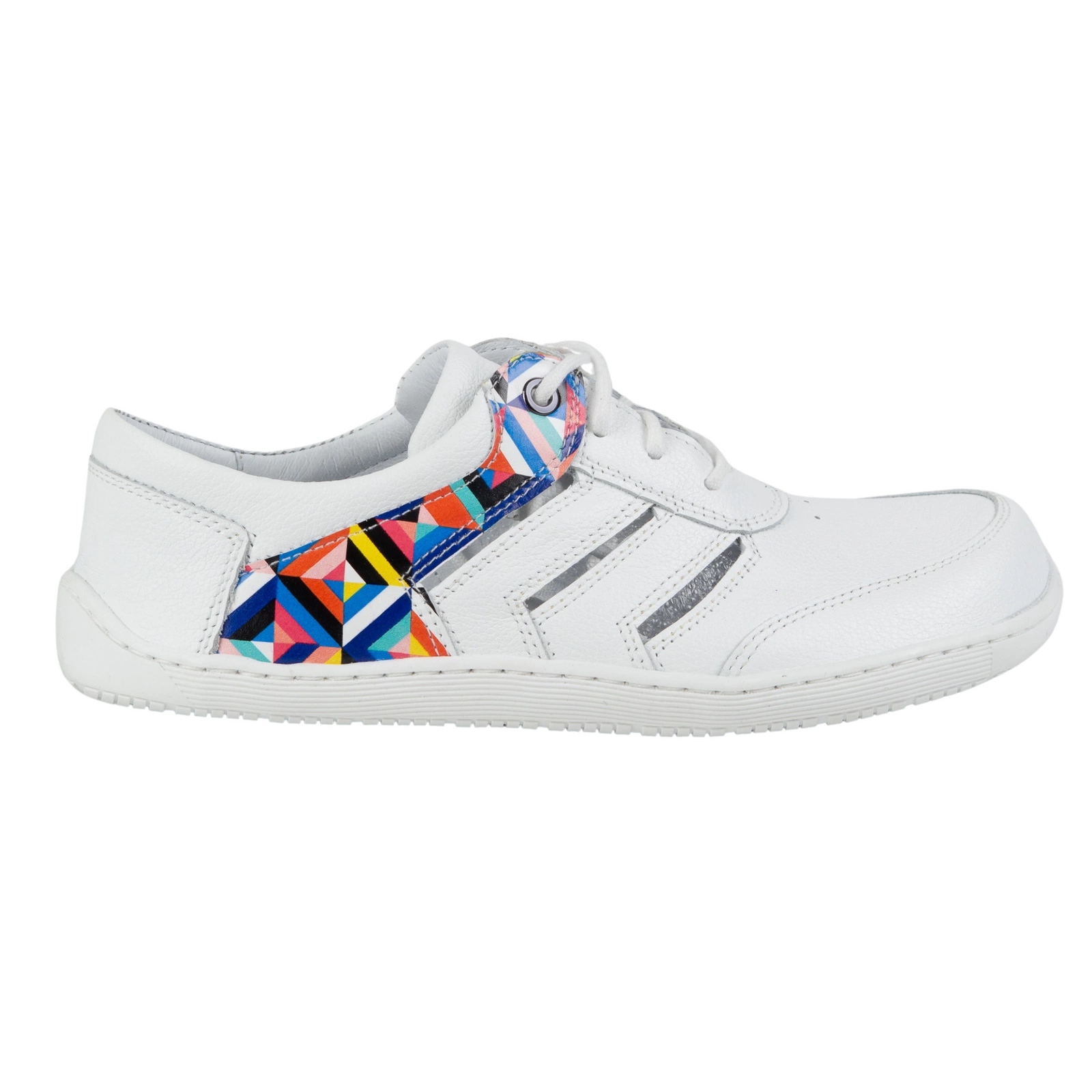 Természetes bőrből készült, a layla cipőket az oldalsó finom kivágások jellemzik, amelyek nemcsak könnyedséget adnak nekik, hanem kiváló szellőztetést is biztosítanak. Az etno-pop stílusú geometriai nyomtatás, amely ezeket a cipőket díszíti, divat-manifesztumsá teszi őket, tökéletesen illeszkedve a nyári trendekhez.