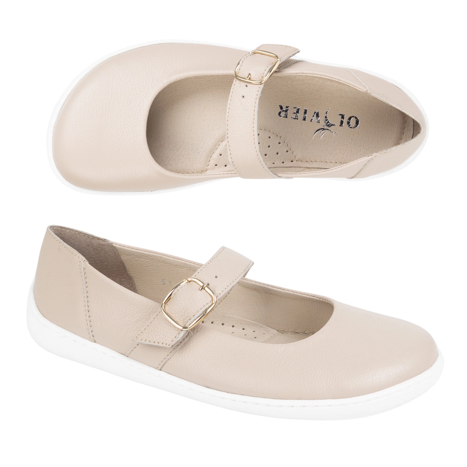 Részletek: Mezítláb női balerinas Olivier 1770pol bőr cipő bézs csatjal