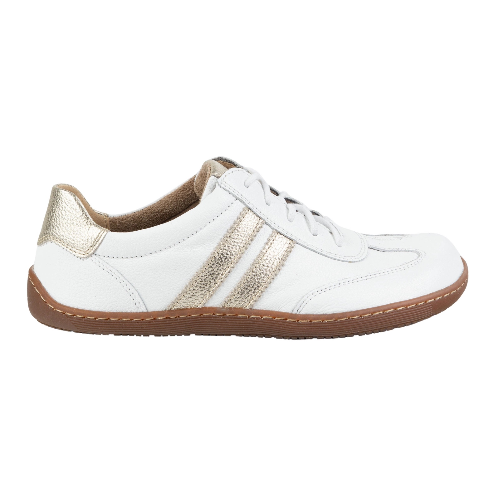 Olivier Barefoot cipők A nők minimalista 1287, fehér színű, arany akcentussal, nagyszerű választás azoknak a nőknek, akik stílus, kényelem és egészség kombinációját keresik a lábuk számára. Ez a modell felkéri Önt, hogy fedezze fel a gyaloglás természetességét, minimalista struktúrájának köszönhetően a teljes mozgás szabadságának lehetőségét.