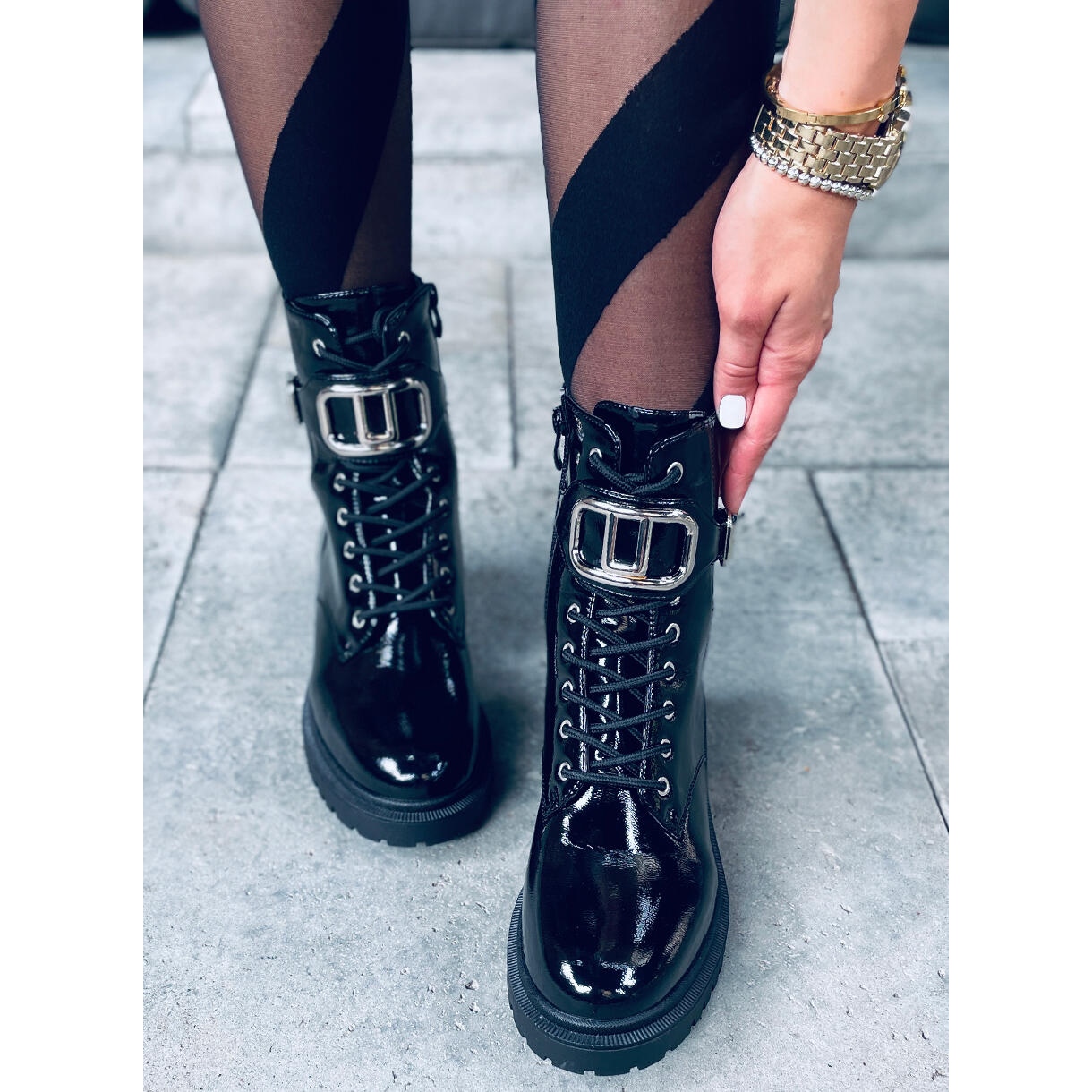A Mila PATENT (BLACK) patentos bokacsizma tökéletes választás a divatos nők számára, akik értékelik a stílust a kényelemmel kombinálva. Ezeket az elegáns, magas talpú munkáscipőket klasszikus dizájnjuk és a legdivatosabb lakkozott felületük jellemzi, amely egyedi karaktert ad nekik. Egy szemet gyönyörködtető ezüst részlet díszítés formájában sikkessé teszi az egészet, garantálva a WOW hatást minden nap!