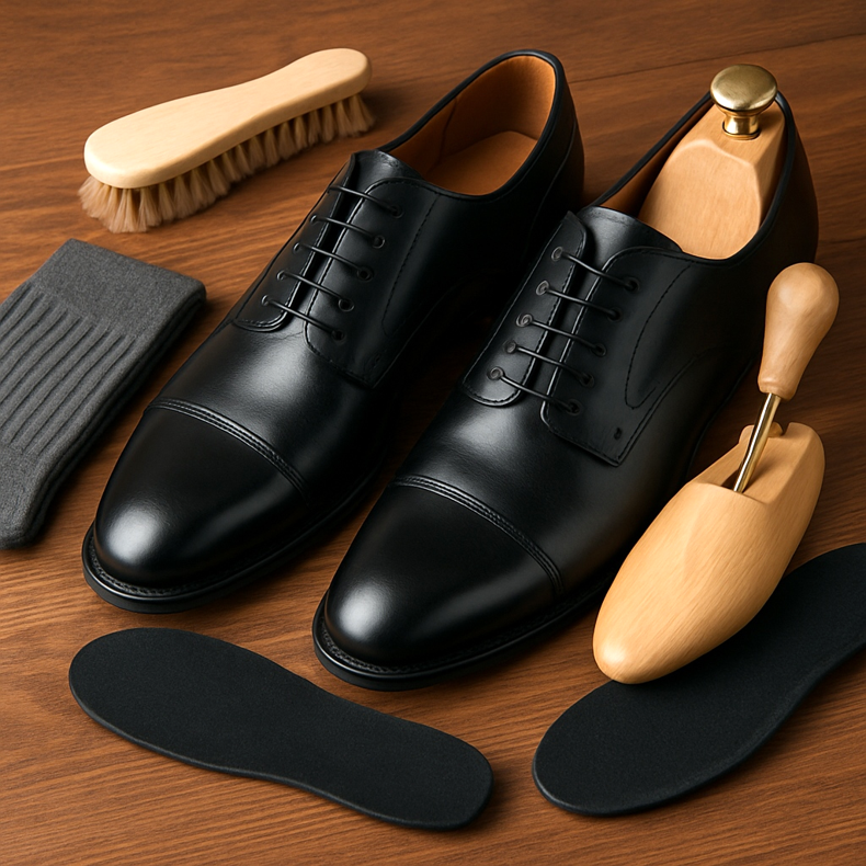 A cipőnek tökéletes állapotúnak kell lennie – fényesre polírozottnak és használati nyomok nélkül. Fontolja meg, hogy felkeres egy cipészt professzionális takarítás céljából.