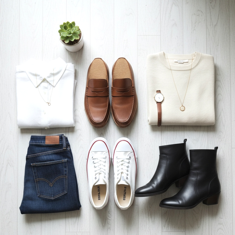 A minimalista cipőkollekció felépítése az életvitel megértésével kezdődik. Ha sok időt tölt az irodában, ez lehet egy fekete bőr ruhacipő vagy bokacsizma. Ha a hétköznapi stílust részesíti előnyben, egy fehér tornacipő vagy vászon tornacipő lesz a tökéletes választás. A harmadik pár formálisabb alkalmakra való – lehet fekete magassarkú vagy elegáns szandál. A kulcs az, hogy olyan cipőt válassz, amit rendszeresen hordasz, ne pedig olyanokat, amelyek évszakokon át a szekrényben ülnek.
