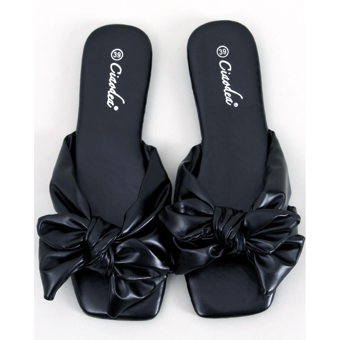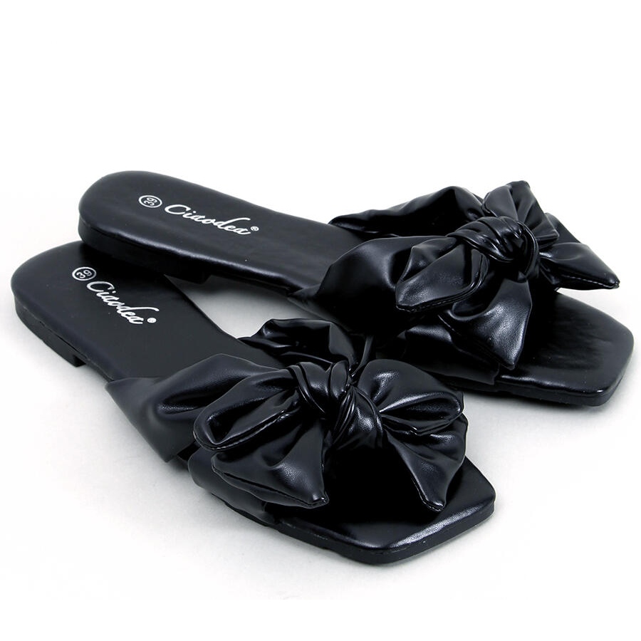 A stílusos, gyönyörű masnival ellátott papucsok minden bizonnyal sok figyelmet vonzanak, sima felületükkel és klasszikus feketével pedig sok öltözékhez passzolnak. A szintetikus talpnak és az ökológiai bőr talpbetétnek köszönhetően minden lépésnél garantált a kényelem.