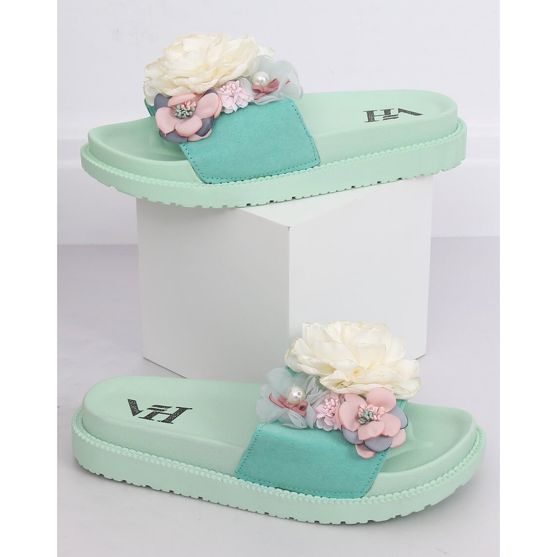 A PT-109 menta zöld, magas talpú papucsok tökéletes választás minden nő számára, aki értékeli a kényelmet és a stílust. Ezeket a bájos papucsokat a különböző színű virágok szokatlan alkalmazása jellemzi, ami romantikát és könnyedséget kölcsönöz nekik.