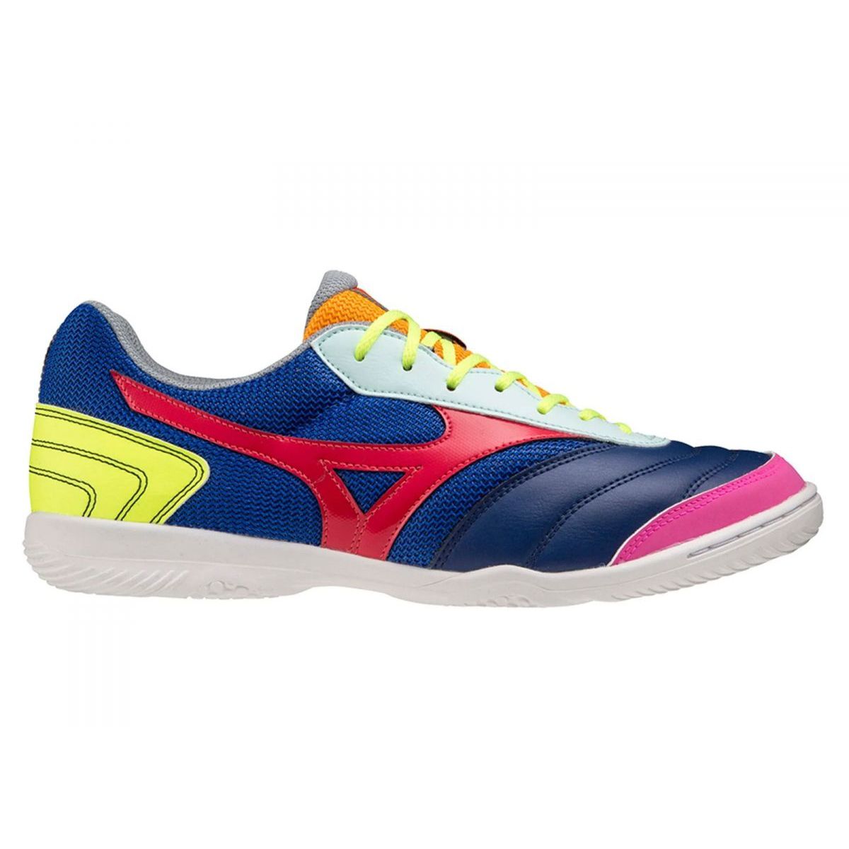 Fedezze fel a játék új dimenzióját a Mizuno Morelia Sala Club IN sötétkék futballcipővel, többszínű díszítéssel. Ezek a kiváló minőségű, beltéri felületeken való játékra szánt cipők a modern dizájnt ötvözik az innovatív technológiával, ami ideális választássá teszi a futball szerelmeseinek.