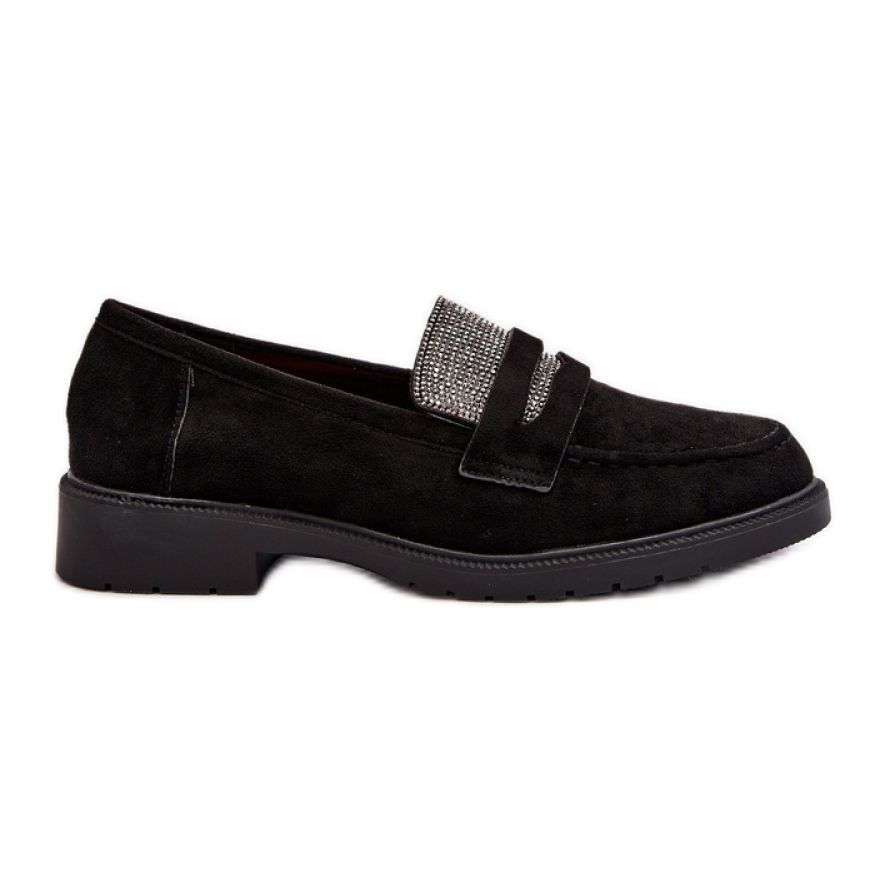A Moccasins modell Dananei 100-337 A Black a Step Sty Style-tól a tökéletes választás azoknak a nőknek, akik értékelik a kényelmet és az eleganciát a mindennapi stílusban. Kiváló minőségű öko velúrból készültek, ezek a fekete cipők finom részletekkel vonzzák a figyelmet - kicsi, fényes cirkonok, amelyek egyedi karaktert adnak nekik.