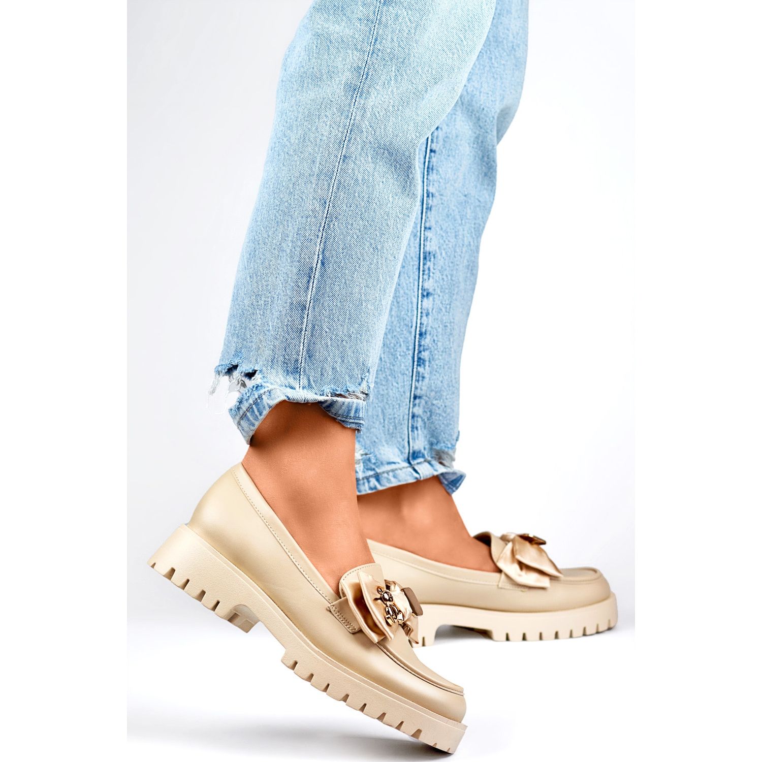 A mokaszinok bézs színű színe rendkívül sokoldalúvá és könnyen illeszkedik a különféle szekrényekhez. Ezek a stílusos íj íjával minden bizonnyal nagyszerű választás lesz tavasszal és nyáron, de időtlen kialakításuknak köszönhetően egész évben fognak dolgozni, hozzáadva az eleganciát és a stilizáció kényelmét.