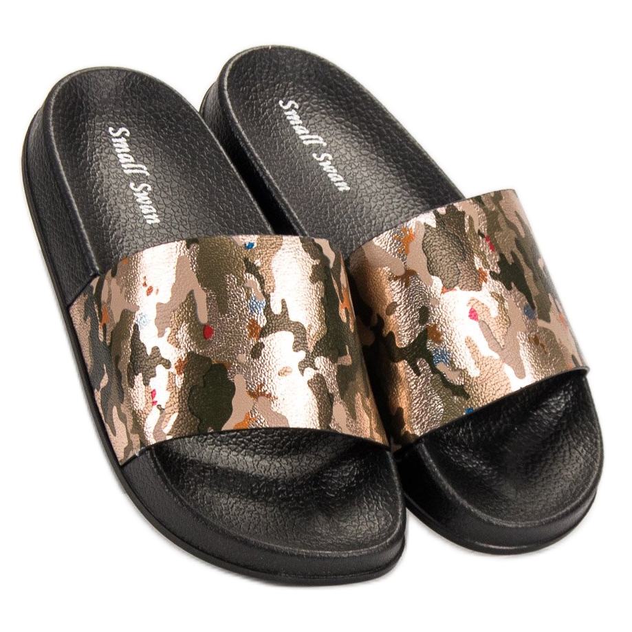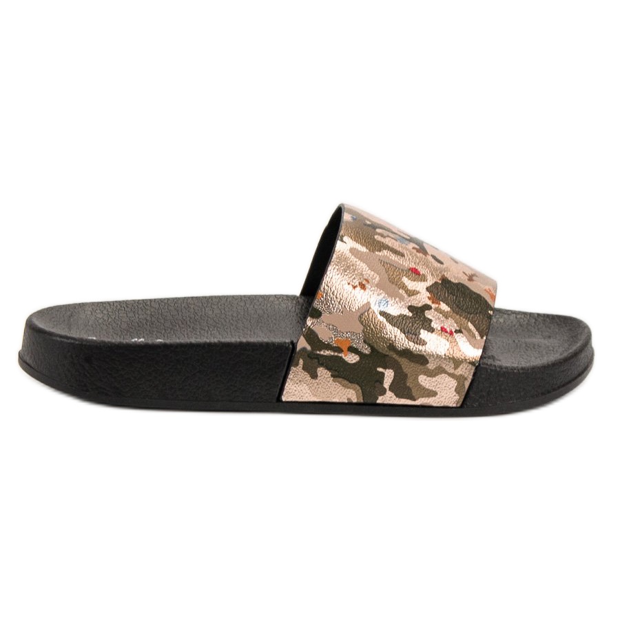 Bemutatjuk a SHELOVET sárga papucsokat, amelyek tökéletesen ötvözik a klasszikus dizájnt az eredeti díszítéssel. Az érdekes, finom arany akcentusokkal dúsított terepképes grafikának köszönhetően ezek a flip-flopok kiemelkednek a standard modellek közül, és minden stílushoz enyhén egyedi karaktert adnak.